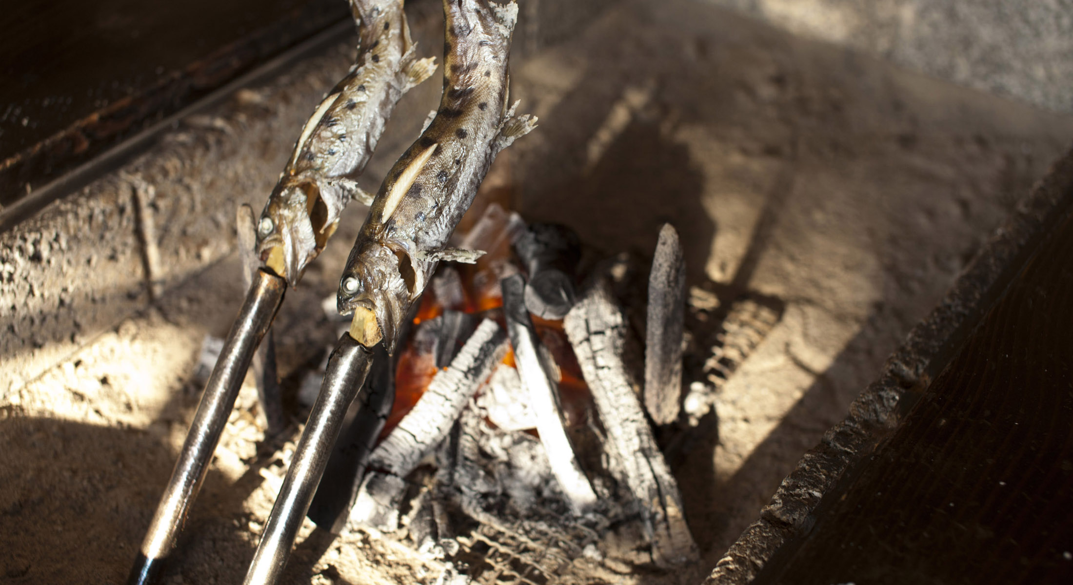 囲炉裏の個室で、宮崎牛や山女魚の塩焼きを炭火で焼いてご堪能ください。